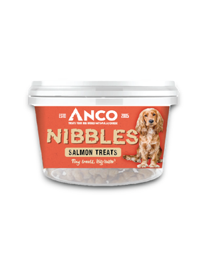 Tiny treats with big taste! Packed with the naturally rich flavour of salmon, these single-protein, grain-free training treats are a tasty and nutritious way to keep your dog motivated. Salmon is an excellent source of high-quality protein and omega-3 fatty acids, which support healthy skin, a shiny coat, and overall wellbeing. Anco Nibbles – Salmon are made with wholesome, natural ingredients. Their irresistible aroma helps hold your dog’s attention during training, while the soft, non-greasy texture makes them easy to digest and suitable for dogs of all ages. Conveniently packed in a resealable tub to stay fresh, they’re the perfect reward for healthy, happy training sessions.